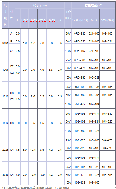 CC4 CT4径向直插独石电容全系列产品规格书