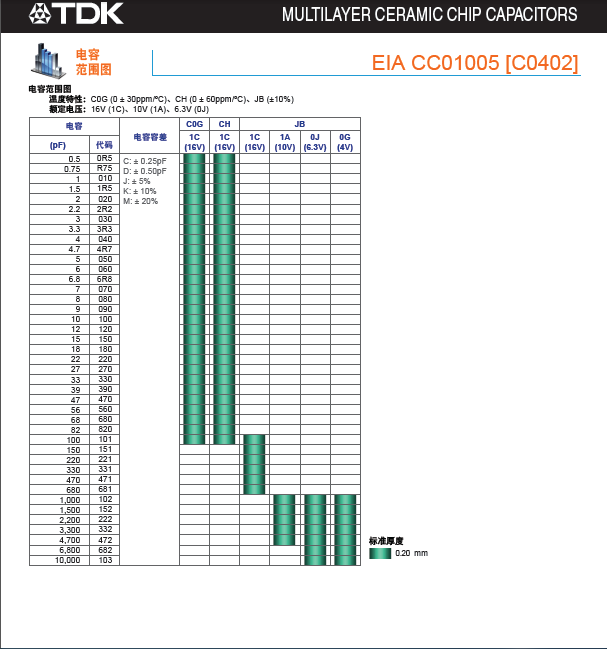 0402 TDK电容全系列产品