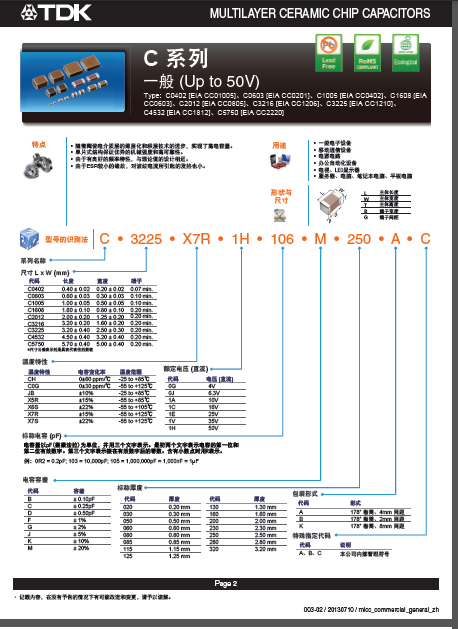 0402 TDK电容全系列产品规格书