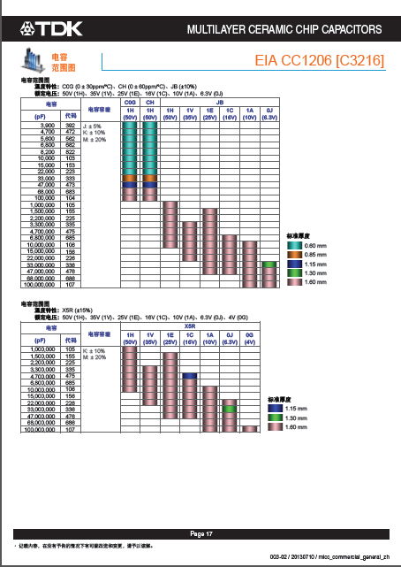 1206 TDK电容全系列产品规格书
